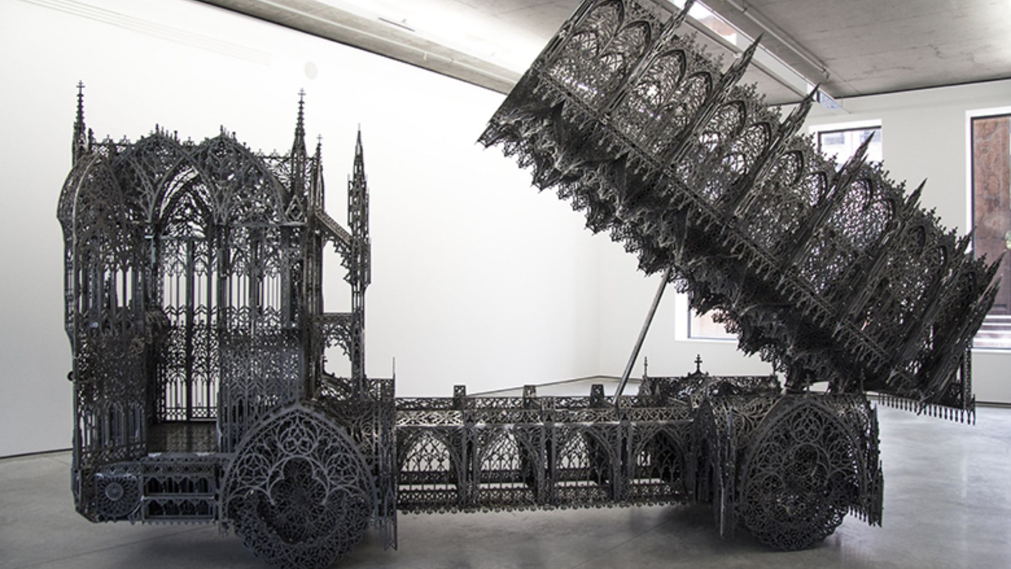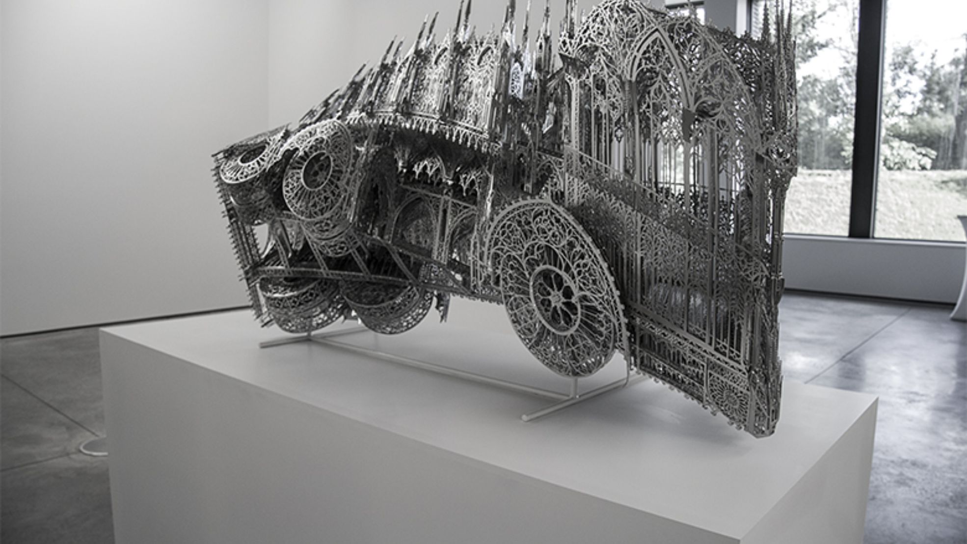 Сегодня работы Дельвуа кураторы и арт-дилеры мечтают продать олигархам. Теперь и московским. Скажем, стальной грузовик реальной величины, изрезанный под готику, который, к тому же, по версии создателя, должен постепенно ржаветь под воздействием солнца, хорошо бы смотрелся на условной рублевской лужайке. Его тоже привезли на выставку в Москву, которая открылась в галерее Гари Татинцяна под залпы пробок из-под шампанского Taittinger - этот бренд всегда старается поддержать светские и культурные мероприятия. Бомонд восторженно ахает с бокалами в руках и удивляется.