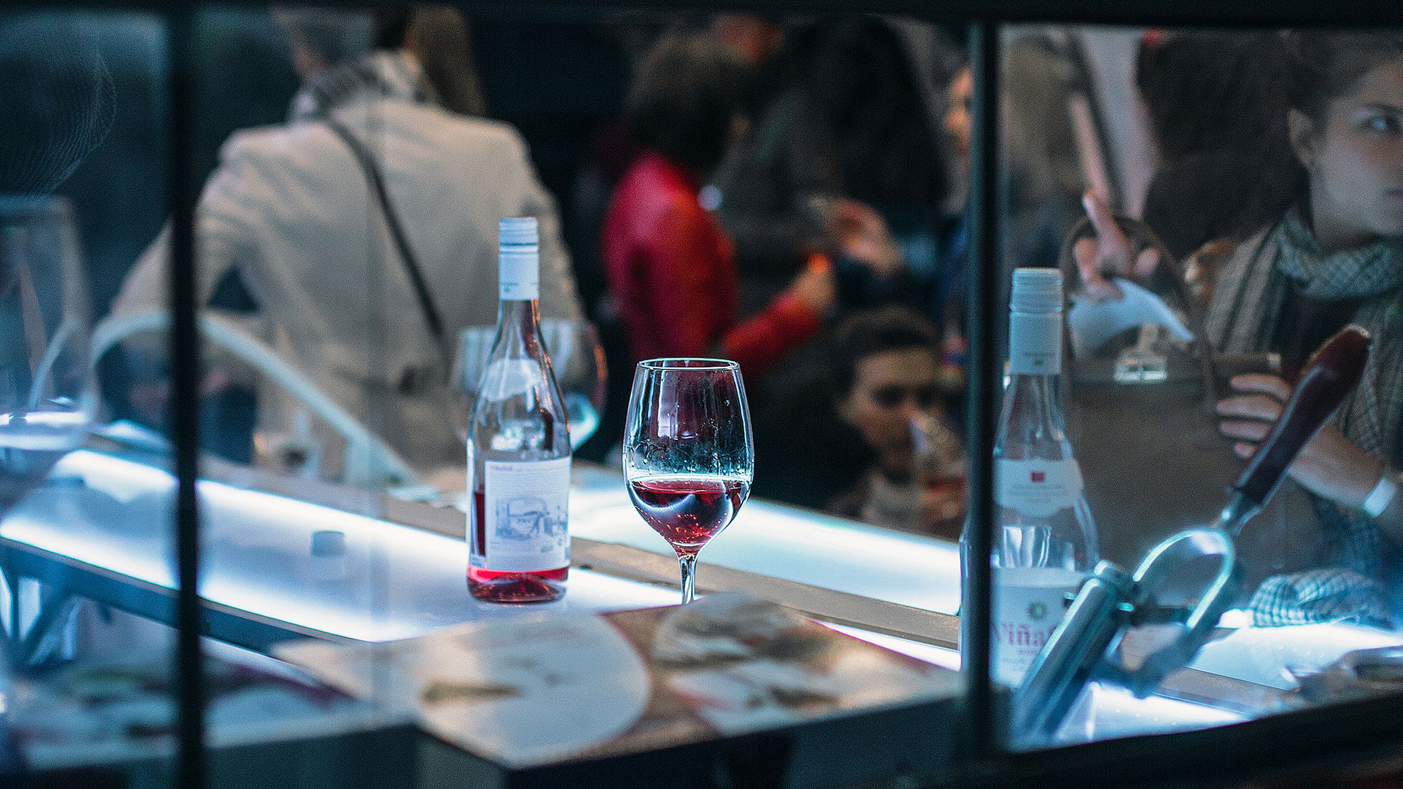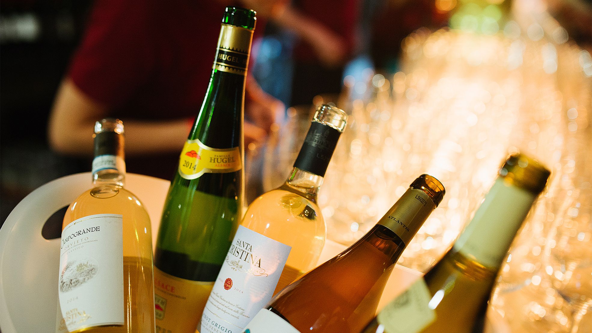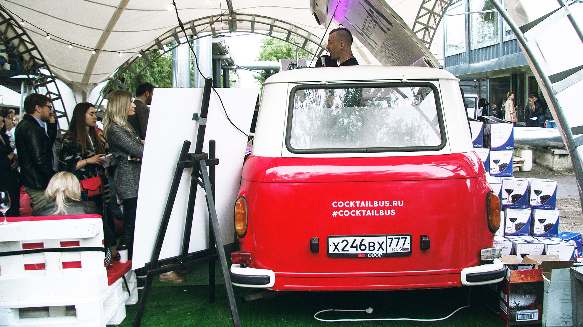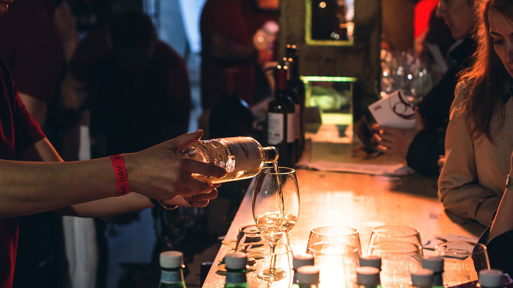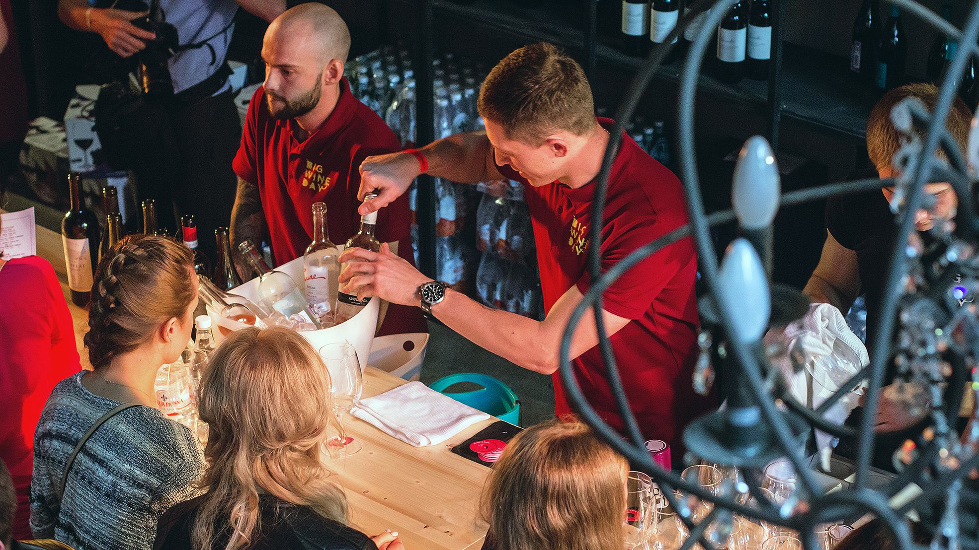 Вечеринка началась днём, и самый её разгар пришёлся на 5-6 часов вечера, когда, выражаясь словами Майка Науменко, танцевали так, что трясся весь дом. При входе гостям вручали «паспорт дегустатора», который давал возможность бесплатно попробовать три (а тем, кто выиграл именной «паспорт» в нашей викторине #ПежоВино, — четыре) бокала любого вина, что открывали на BWD (больше 70-ти различных вин). В главном баре компании MBG (генерального организатора), из-за стойки длиной в 12 метров, открывали 35 бутылок, включая розе, красные и белые разной плотности из Старого и Нового Света. Среди них, например, были вина от Cvne, Antinori, Penfolds, Matsu и Hugel. В главном баре было очень людно, даже тесновато, как и должно быть в сердце вечеринки, но без давки. Над центральным баром, на втором этаже, в Bubble Bar, открывали шампанские вроде чопорного Tattinger и игристые вина, например, бодрые просекко от Jeio и франчиакорту.