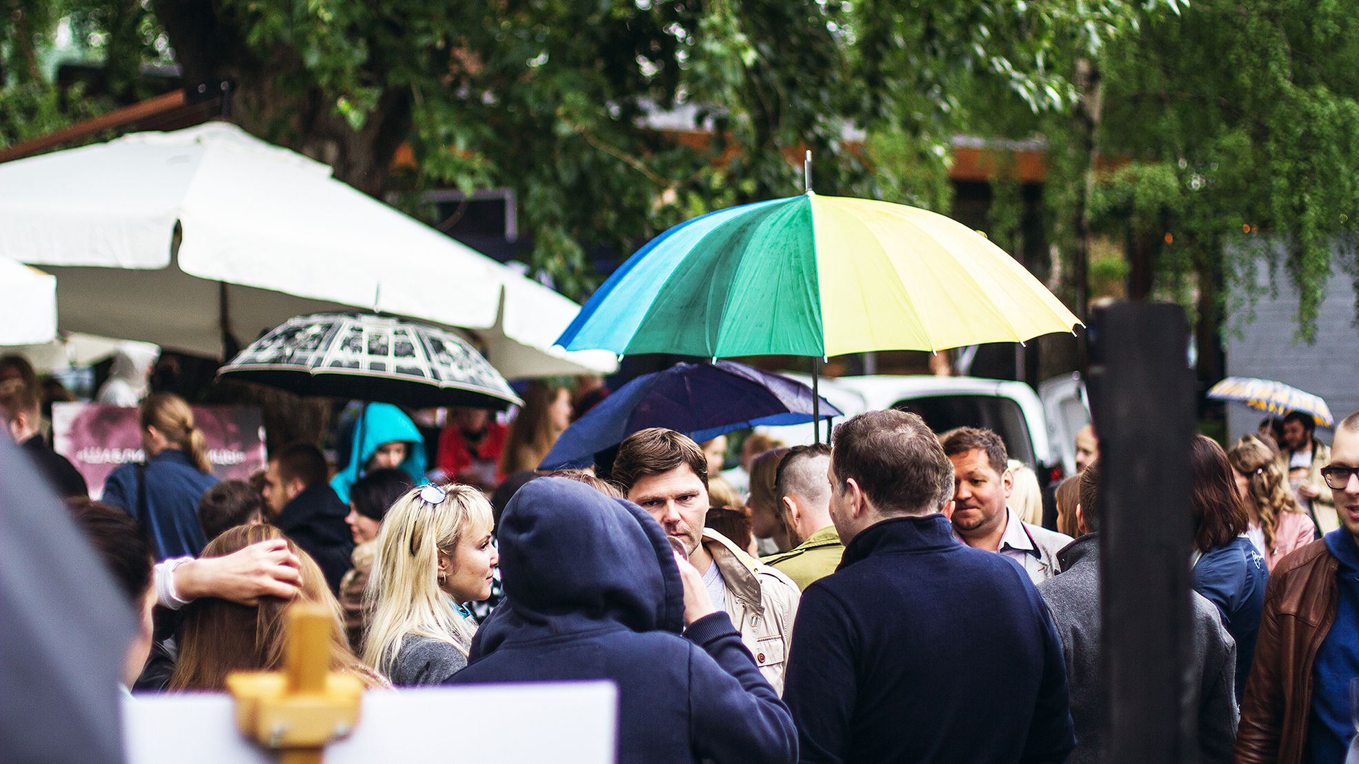 Честно говоря, изначально мы хотели аккуратно собрать на BWD любителей вина и гастрономии, устроить тихий междусобойчик, но то, что получилось, превзошло все ожидания. При планировании события мы рассчитывали на 1500 гостей, а накануне подняли планку до 1800 с учётом всех друзей и друзей-друзей, но в итоге в лофте Brooklyn Studio и его ближайших окрестностях неожиданно уместилось 2500 человек — целая средняя школа. Лил дождь, но две с половиной тысячи человек, мокрые и довольные, гуляли по закоулкам маркета с бокалами в руках, брускеттами, раковинами от устриц, бутылками и дегустационными паспортами вместо удостоверения личности. Чтобы понять, почему BWD вызвал такой огромный интерес, мы решили вспомнить, что там было.