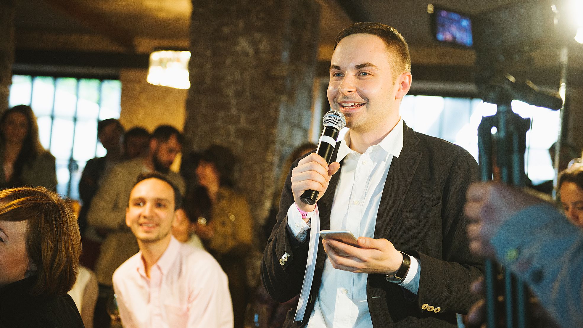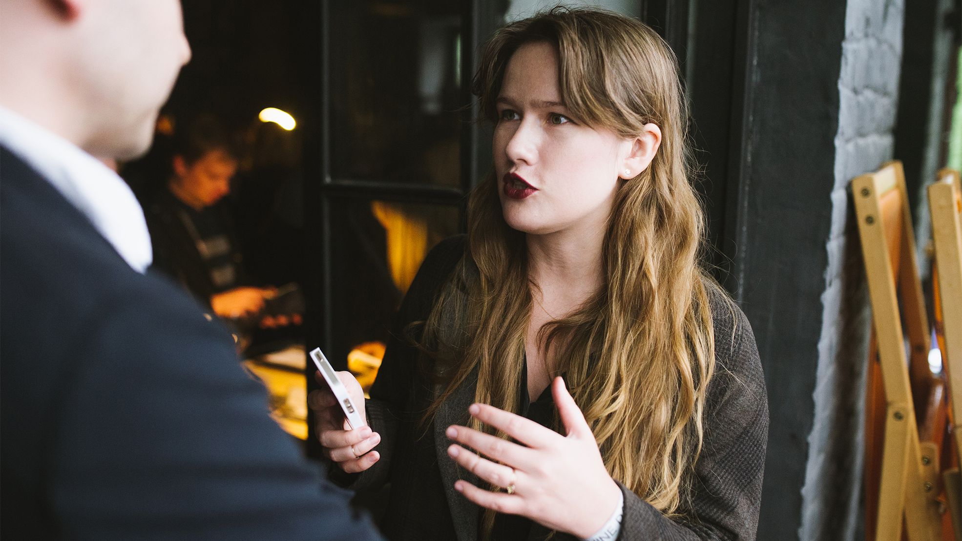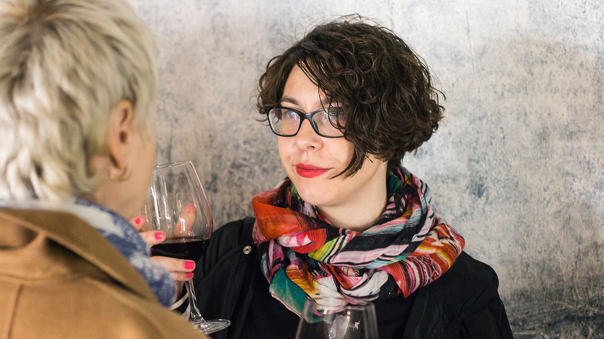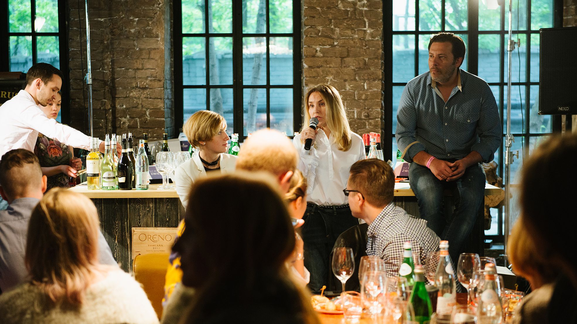 Кроме баров, внизу работала зона воркшопов. Пока отовсюду лилась музыка и раздавался смех, в гостиной мастер-классов интересные люди диктовали нескучные конспекты: Антон Обрезчиков рассказывал про разницу пузырьков в игристом на примере нот, Юлия Саввина учила разбираться в разных бокалах под вино, Геннадий Йозефавичус вспоминал историю культовых винных домов. В 17:00 прошла презентация русской версии главной книги для винных чайников «Wine Folly». В зале установили телемост с создательницей самого популярного молодежного винного проекта в США Wine FollyМэдлин Пакетт. Она общалась с нашими друзьями, будучи на другой стороне планеты, в Сиэтле, где в тот момент было 5 утра.