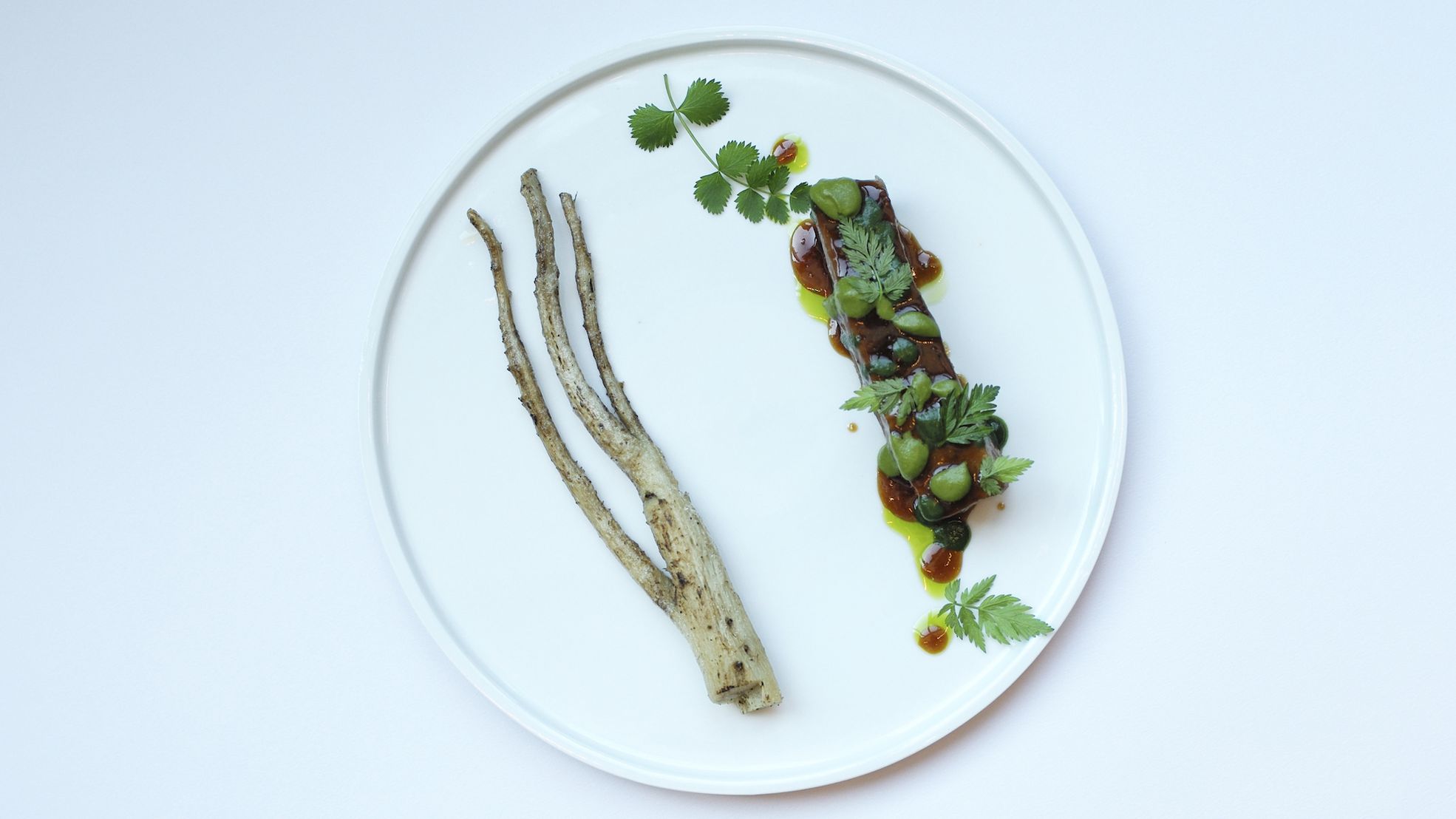 Подающий надежды петербургский шеф Антон Абрезов хорошенько заматерел, постажировался в Скандинавии, и из «Мечтателей», молодежной площадки с вином, кофе и завтраками, ушёл под крыло к новым петербургским рестораторам, в числе которых — Эльдар Кабиров, известный по стейк-хаусу RED и пиццерии «22 сантиметра». Это уже непохоже на экспериментальную историю, при всей нетривиальности достаточно монолитно здесь выглядит всё — не только огромный обеденный стол с подогревом. Даже в случае использования локальных продуктов и небольшой игры с объедками — Антон с придыханием рассказывает про то, как они ферментируют рыбные кости для соуса — кухня тут не игрушки, а вполне резонное слово автора.