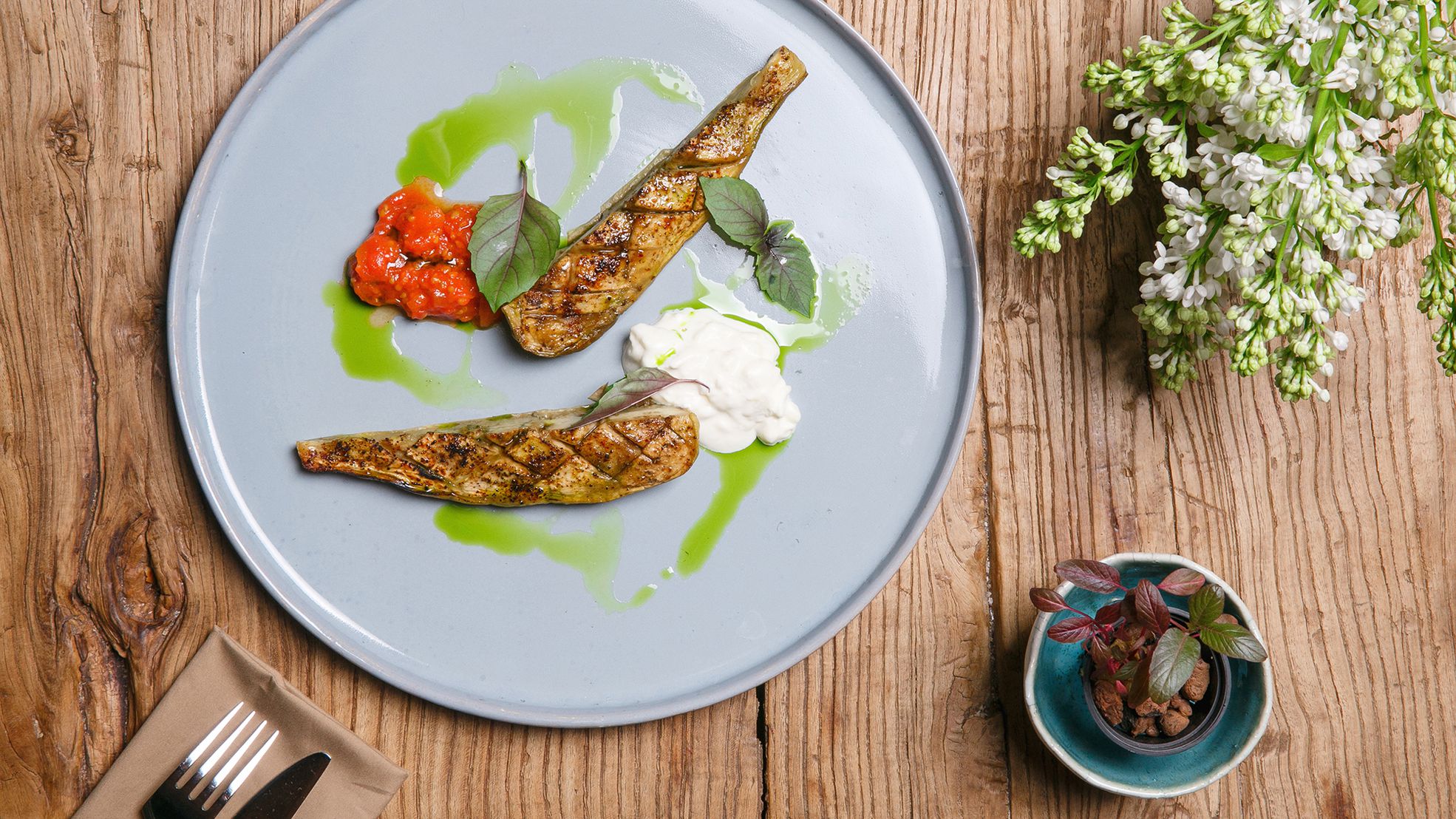Закуска с балтийской килькой пряного посола, яйцом пашот и творожным кремом — 450 р.; тельное из судака с пряной морковью и мороженым из укропа— 450 р.; камбала с щавелевым кули, сезонными овощами и хрустящим укропом— 650 р.; «Завтрак туриста» (перлотто с ароматными травами и тартар из подкопчённой говядины) — 850 р.