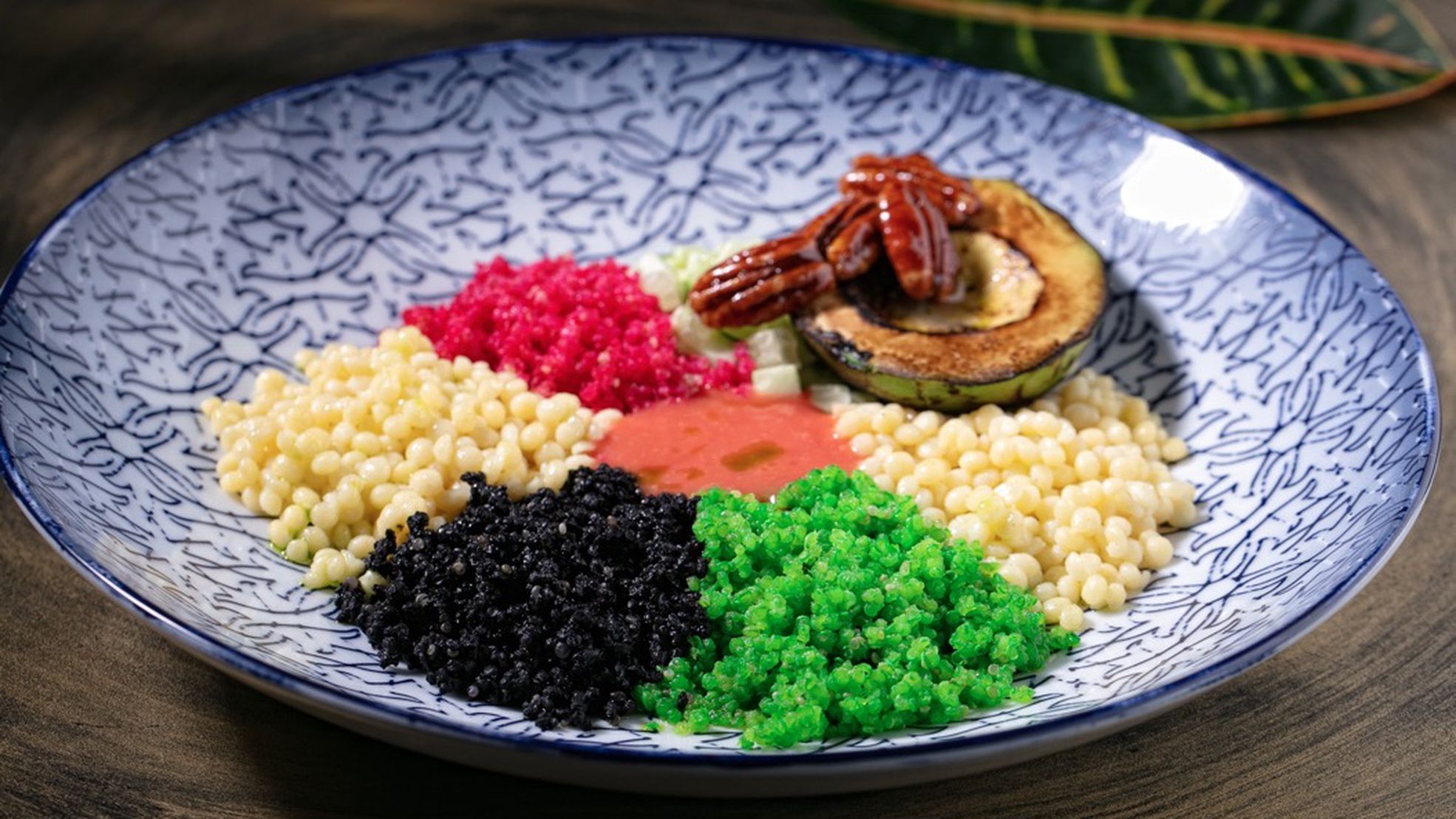 Авокадо — безусловный лидер в меню ICHU. В паре с крабом авокадо участвует в ролле (1150 руб.), хумус из авокадо с тхиной подается с кунжутными лепешками (390 руб.), салат из трех видов киноа и птитимом — с обжаренным авокадо (490 руб.).