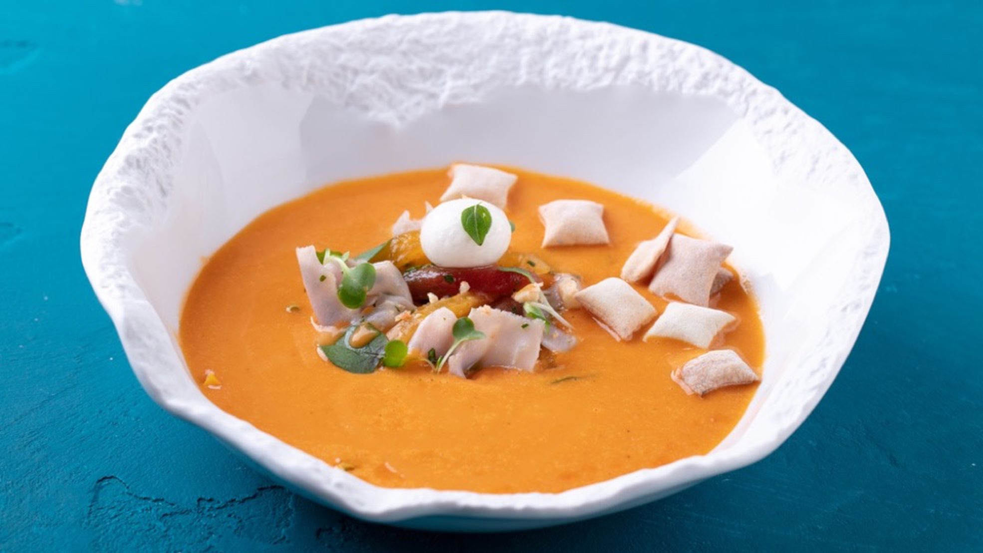 В меню четыре новых блюда: лосось с икрой, капустой кале и воздухом из хрена и дорада с пармантье из свежей зелени, рагу из лисичек и бумагой из черного чеснока. Тем, кто отдает предпочтение свинине, приготовили крем-суп из запеченных помидоров со сферой из копченого сыра и свининой Kamado. На десерт — сырное ассорти с орехами и цветочным медом, которое идеально сочетается с вином.