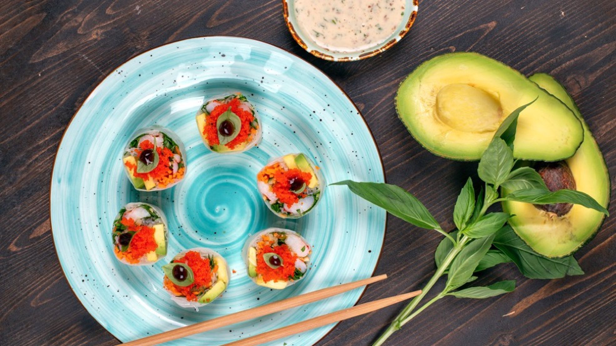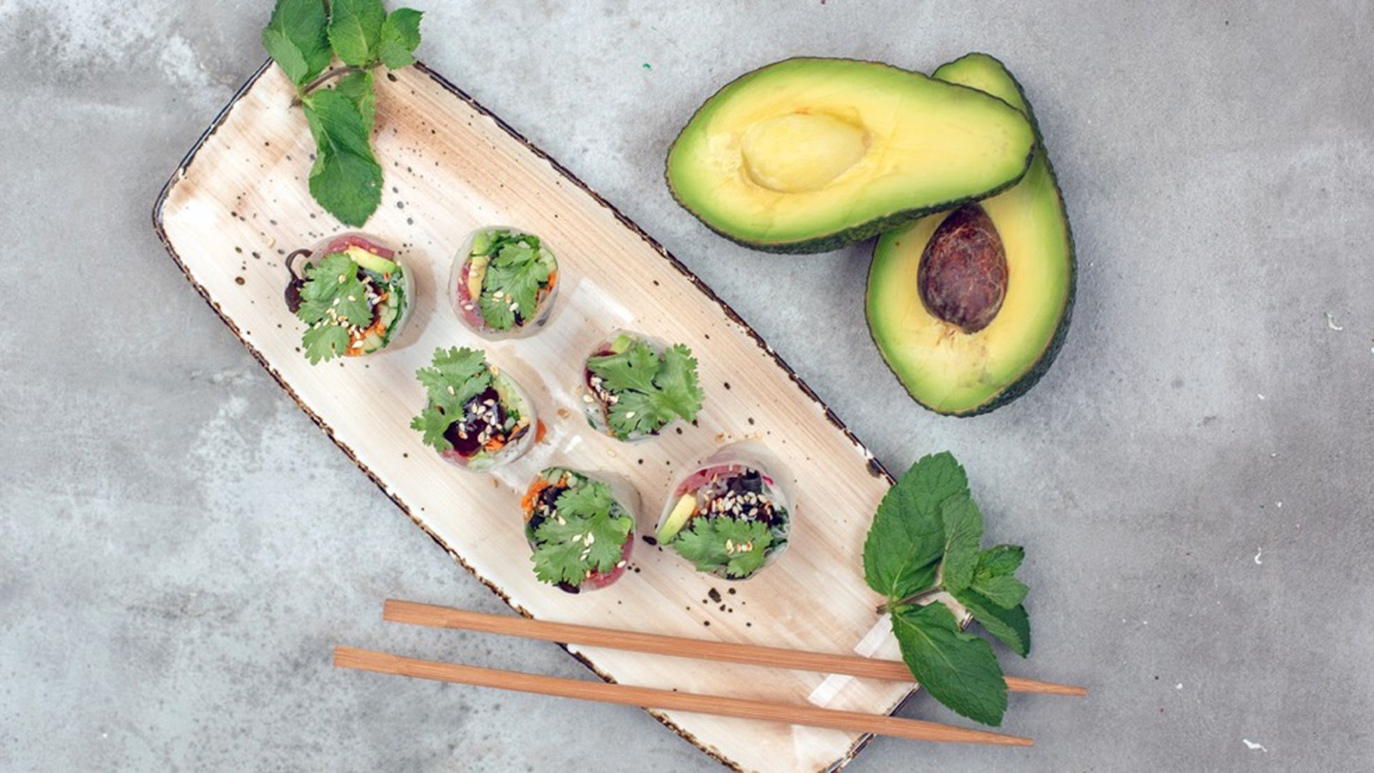 Для старта нэмы из свежего рисового теста с креветками, манго, тобико и арахисовым соусом или с копченой уткой, древесными грибами и устричным соусом. Или спринг-роллы с цыпленком и имбирно-арахисовым соусом.