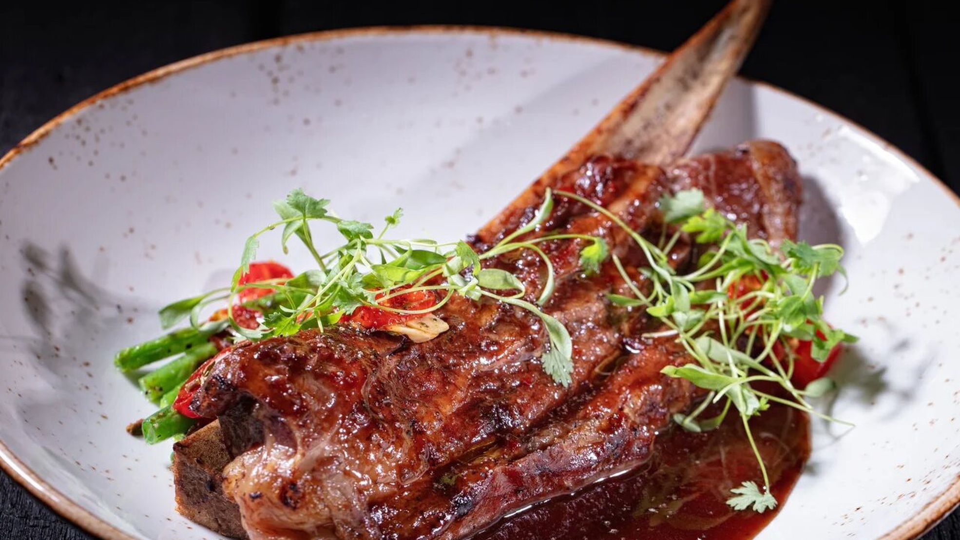 Самое интересное наблюдается в разделе вин по бутылкам: там сомелье рекомендует вина к мясу влажной выдержки и мясу сухой выдержки. Логично, что сухая выдержка меняет ароматику и текстуру мяса. Поэтому к подобным стейкам рекомендуют сложные вина — Бордо 2010 года, Бургундия, санджовезе лучших годов. Нужен баланс: простые вина могут потеряться на фоне мяса.